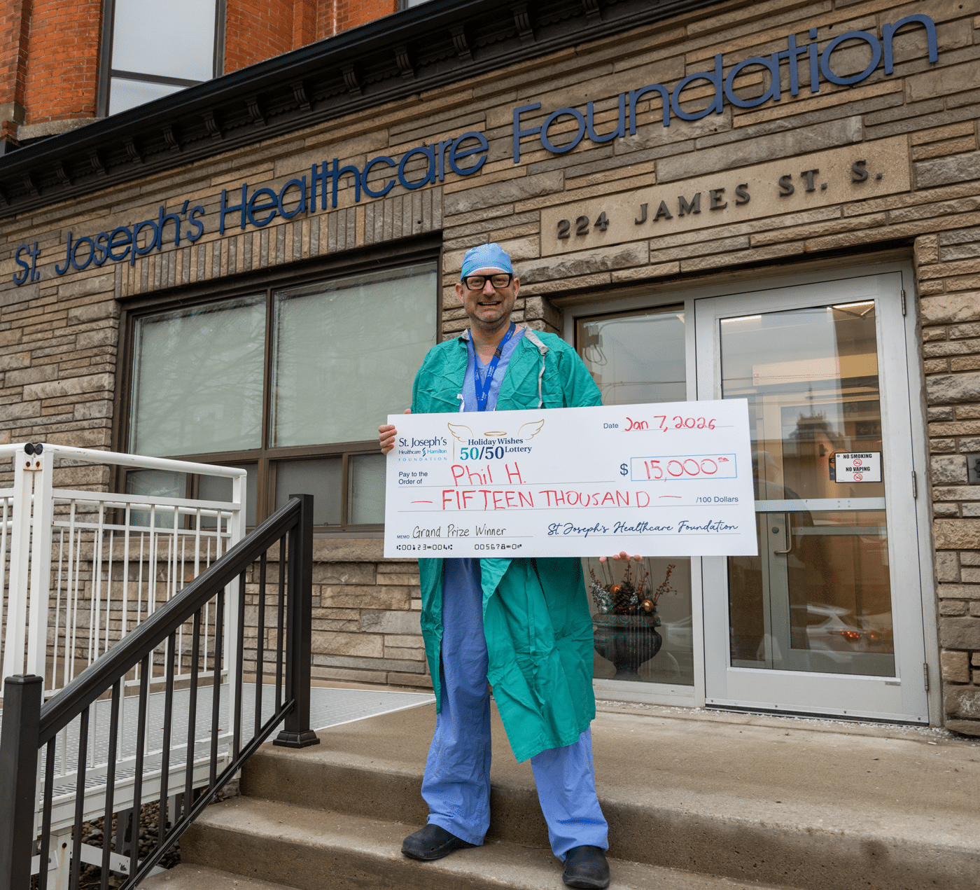 On January 6 at noon, ticket number A-15004322 was drawn as the GRAND PRIZE WINNER in St. Joseph’s Healthcare Foundation’s Holiday Wishes 50/50 Lottery. Congratulations to Phil H. of Brantford who is starting the new year with an extra $15,000!