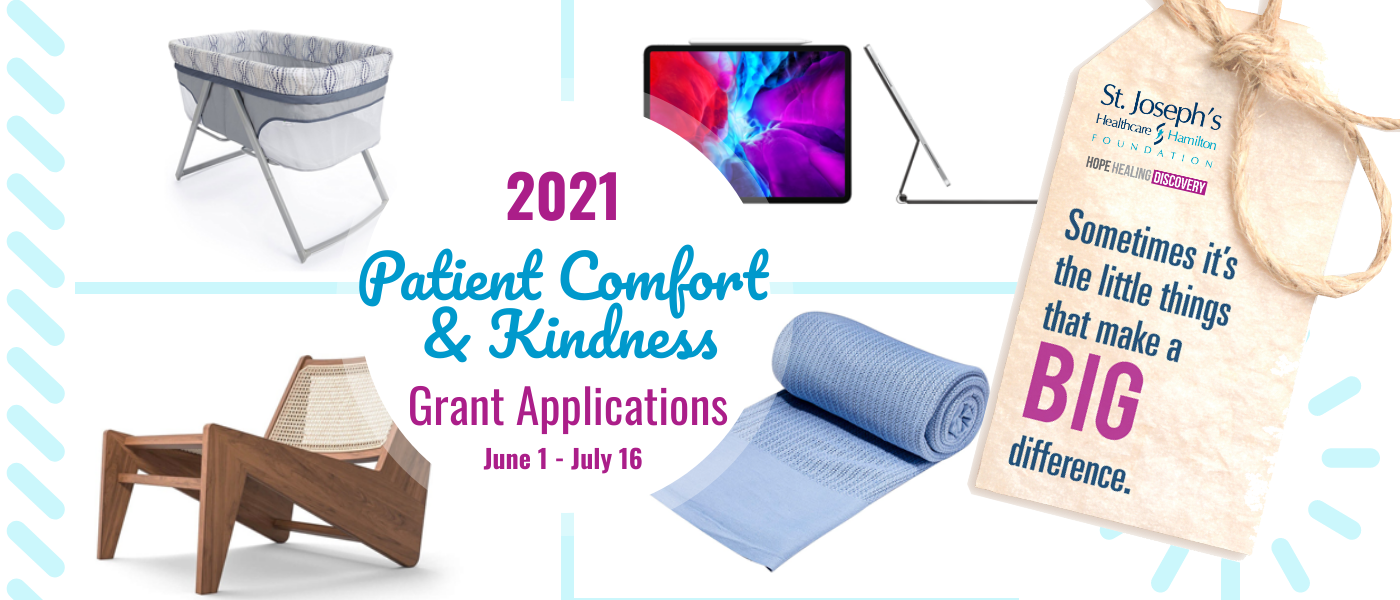 To help enhance patient experiences across St. Joe’s, our Foundation is thrilled to invite Hospital staff to apply for Patient Comfort & Kindness Grants. The grants fund smaller items that can make a big difference in the lives of our patients and their family members. From bassinets to care for newborns in our Mother Baby Unit to blankets that comfort patients during a mental health crises, the grants cover up to $5,000 for much-needed items that are not eligible for funding from the province. Download the application here. The deadline to submit is July 16.