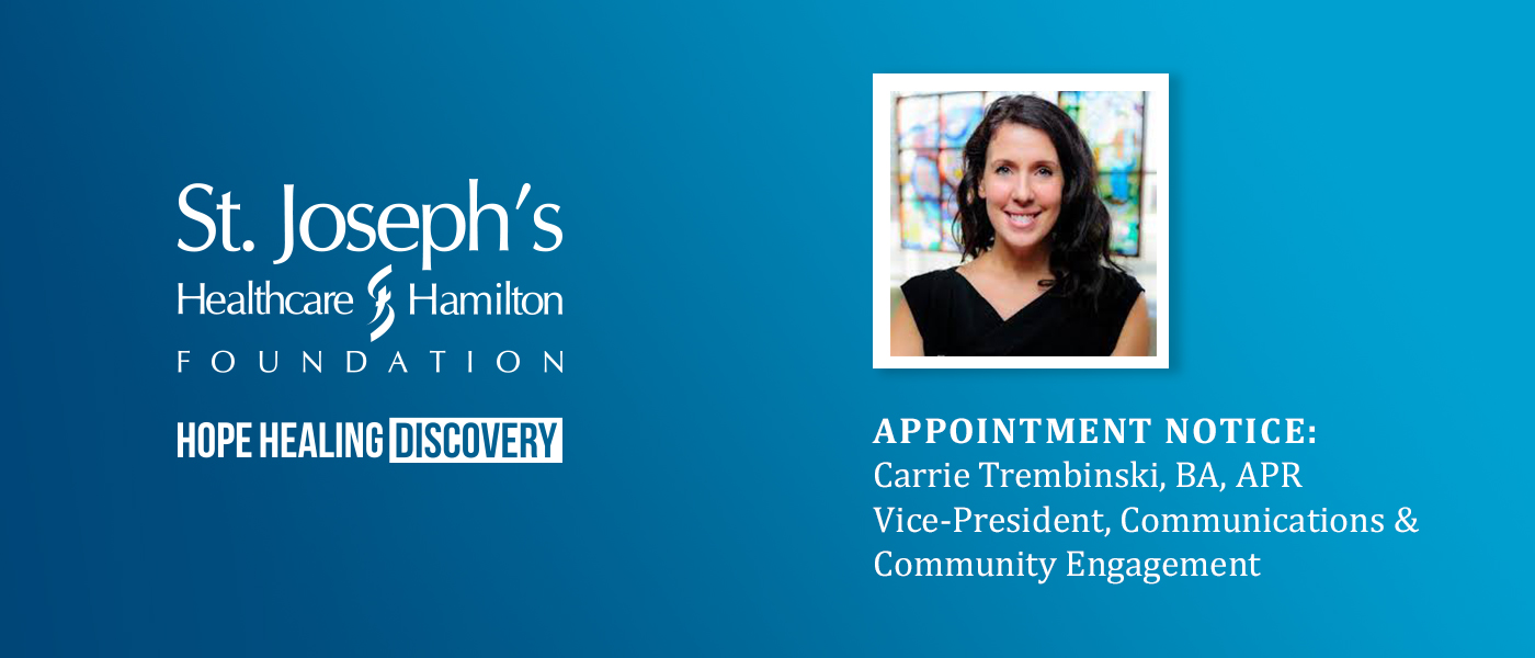 St. Joseph’s Healthcare Foundation is pleased to announce the promotion of Carrie Trembinski, APR, to the role of Vice-President, Communications & Community Engagement. In this newly expanded role, Carrie will continue to lead the marketing and communications efforts of the Foundation while also providing strategic oversight to the special events and cause-related marketing portfolios.